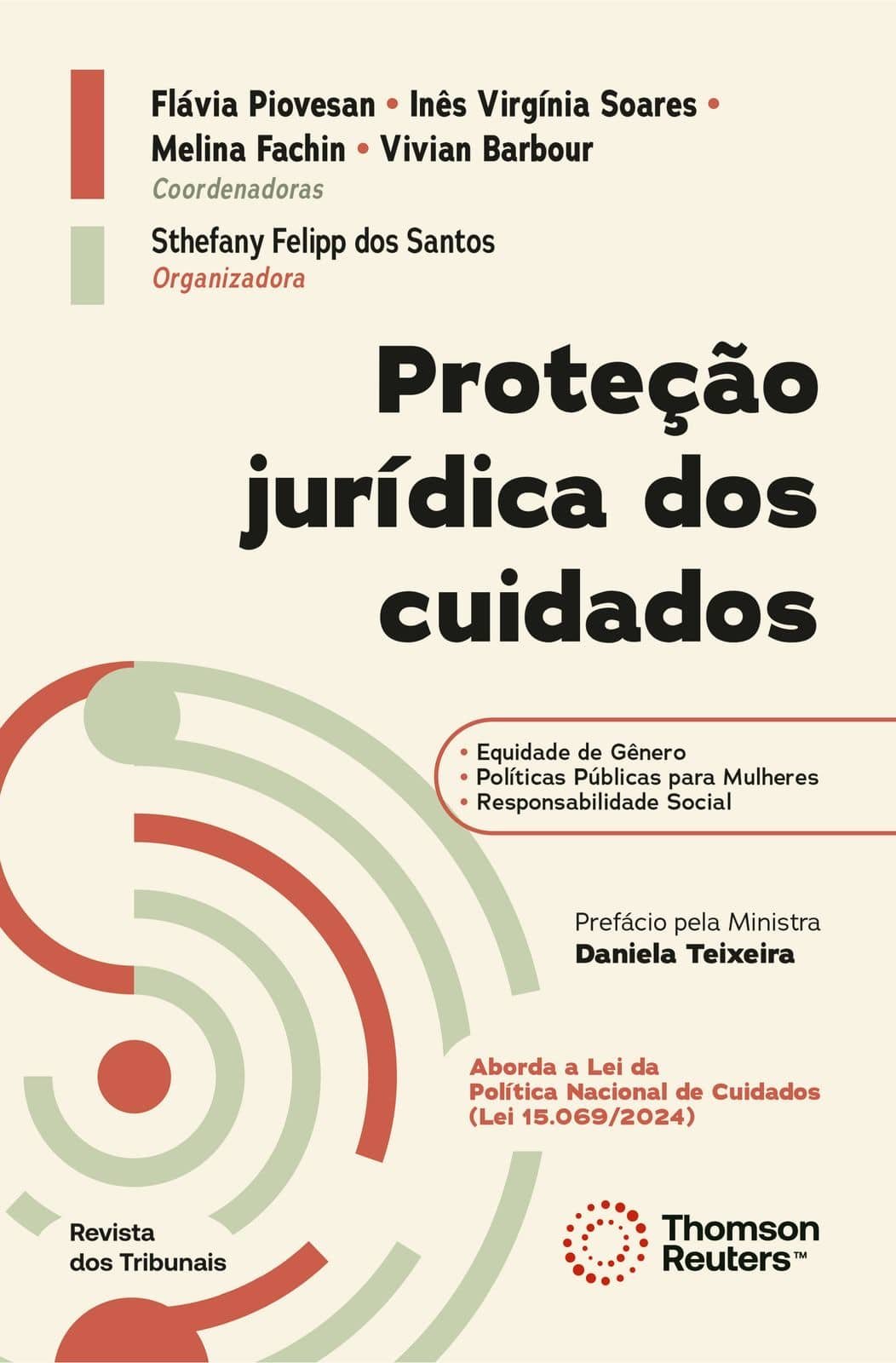 A obra coletiva “Proteção Jurídica dos Cuidados”, publicada pela editora Thomson Reuters – Revista dos Tribunais, traz um olhar aprofundado sobre os desafios jurídicos e sociais na garantia do direito ao cuidado no Brasil. Coordenado por Flávia Piovesan, Inês Virgínia Prado Soares, Melina Fachin e Vivian Barbour, e organizado por Sthéfany Felipp dos Santos, o livro examina questões como o impacto do cuidado no trabalho doméstico, na maternidade, na previdência social e na justiça reprodutiva.