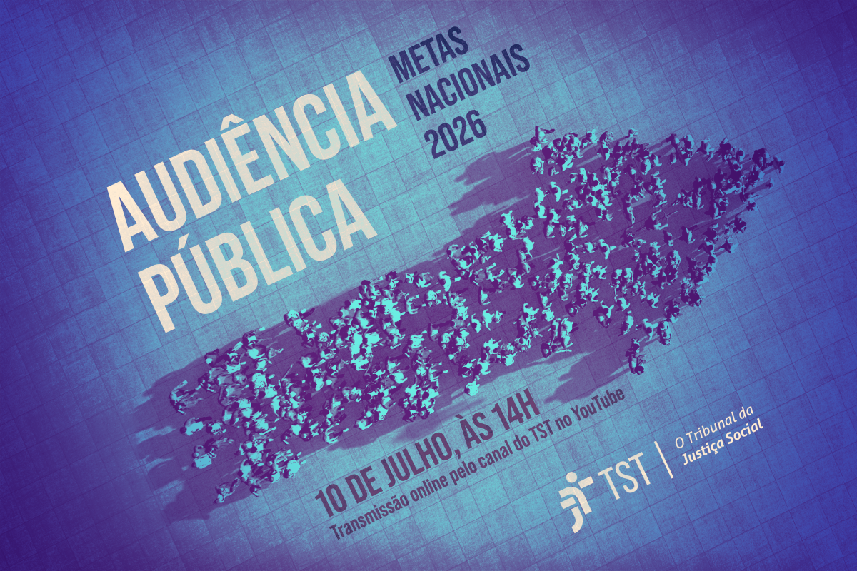 O Tribunal Superior do Trabalho (TST) realizará, no próximo dia 10, uma audiência pública sobre a definição das metas nacionais para 2026. Foram convidados representantes da Ordem dos Advogados do Brasil (OAB), seccional Distrito Federal, do Ministério Público do Trabalho (MPT), da Associação Nacional dos Magistrados da Justiça do Trabalho (Anamatra) e da Associação dos Servidores do Tribunal Superior do Trabalho (Astrisutra). Cada participante terá 10 minutos para expor suas ideias.